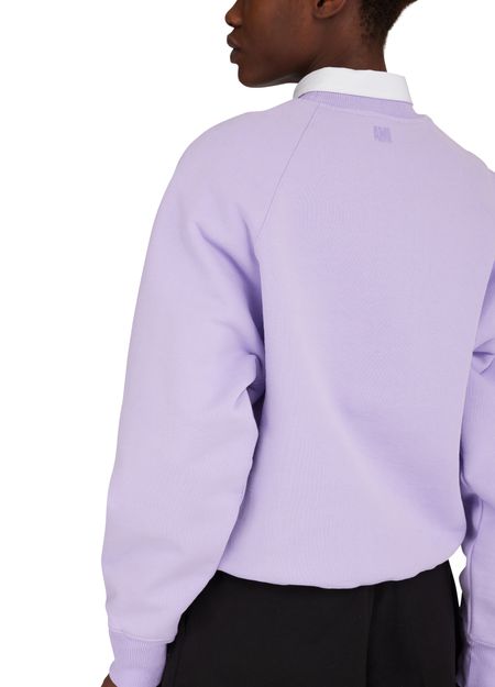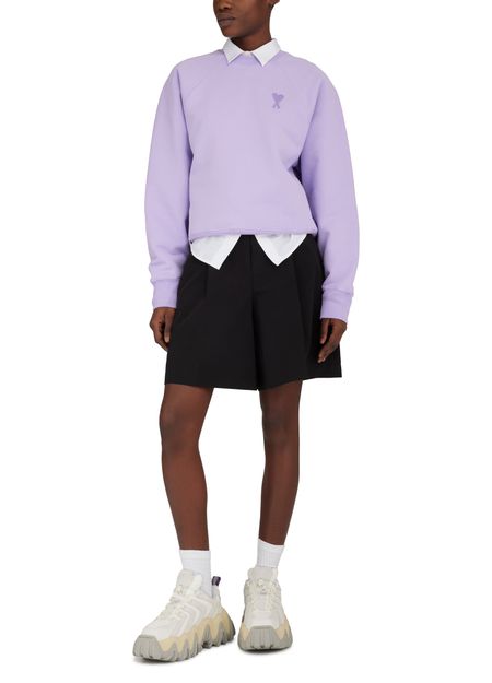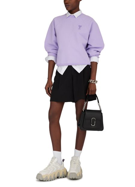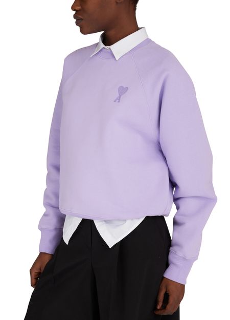Crew neck sweatshirt Ami De Cœur is a long-sleeved sweatshirt with a loose fit, featuring a round neck and raglan sleeves. It is adorned with a chest logo and a logo at the back, adding a touch of style to your casual outfit.