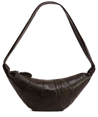 Lemaire's Croissant medium bag showcases smooth leather, exuding elegance with every detail. Its cotton lining adds a soft touch, while the thin strap allows for effortless shoulder wear. The secure zipper closure keeps your essentials safe, making it a perfect companion for both casual outings and sophisticated events.