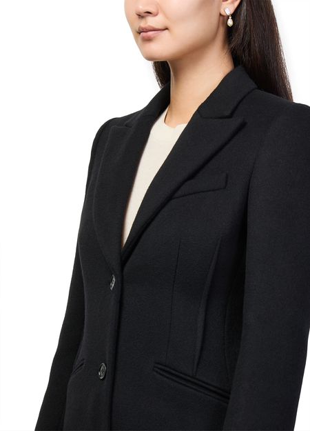 Reveal Alexander McQueen's Dart long coat, crafted from warm fabric for a refined silhouette. The single-breasted design features a classic collar, long sleeves, and practical breast and welt pockets. This timeless piece offers versatile styling, seamlessly transitioning from day to evening with effortless sophistication.