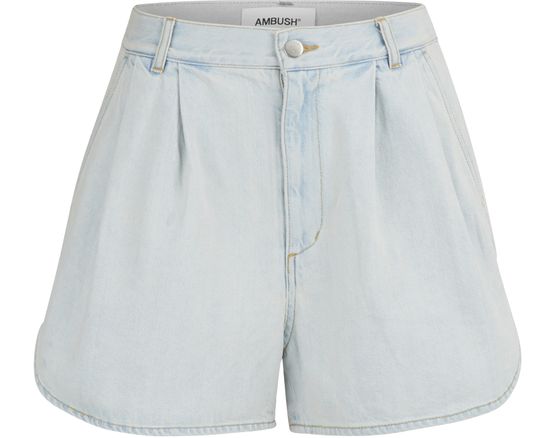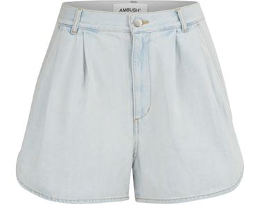 These denim shorts are infused with lightness and fresh allure, so typical of this collection from Ambush. Traditional denim shorts are refreshed and shifted using a city pants look, with flat pleating at the waistline, trimmed back pockets, and side vents for a feminine, refined look. Wear these contemporary shorts with one of the brand's oversized shirts and flat sandals.