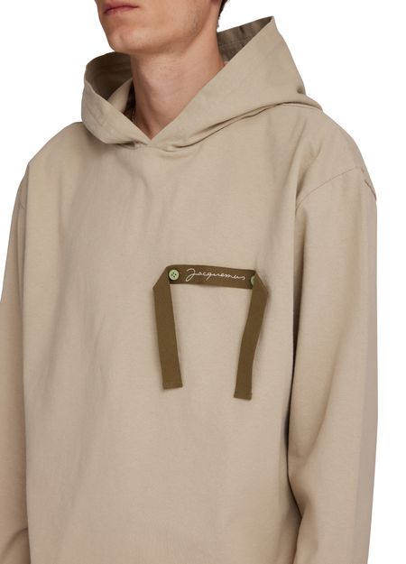 This long-sleeved sweater from Jacquemus is made from warm fabric and features a hood for added comfort. The chest logo adds a touch of branding, while the straight cut and loose fit make it a versatile addition to any wardrobe.