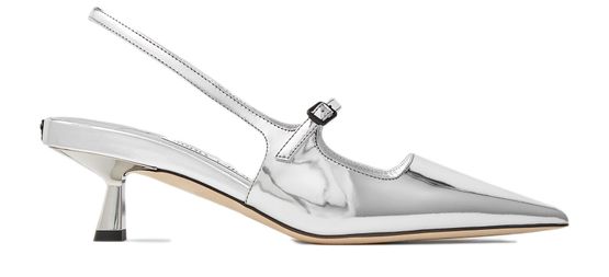Jimmy Choo's Didi pumps 45 are crafted from metallic leather, featuring a pointed toe and very thin sole. With a stiletto heel and rear strap, these pumps exude elegance and sophistication. Perfect for adding a touch of glamour to any outfit, they are a must-have for any fashion-forward individual.