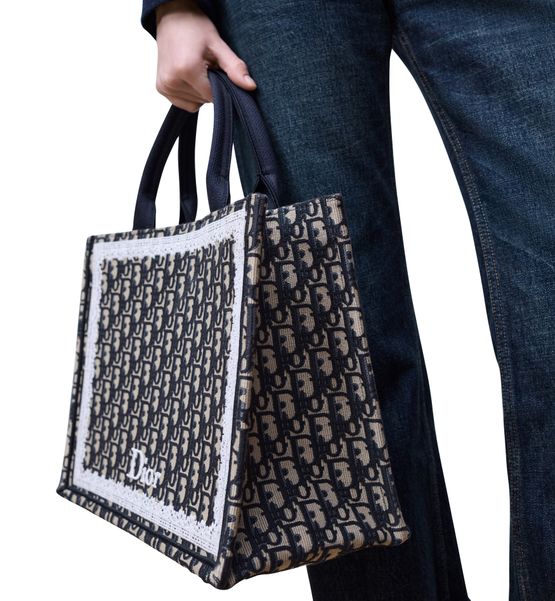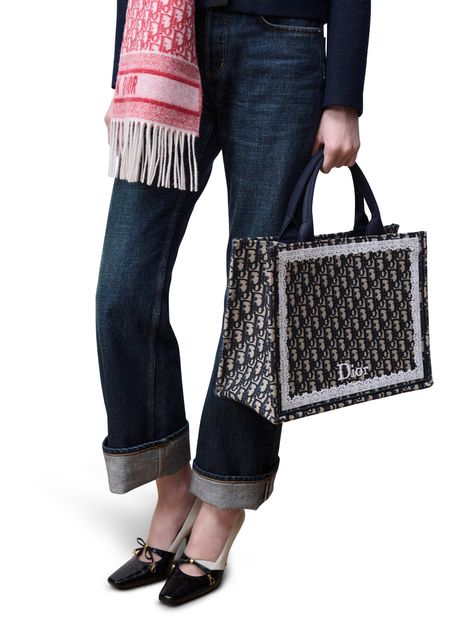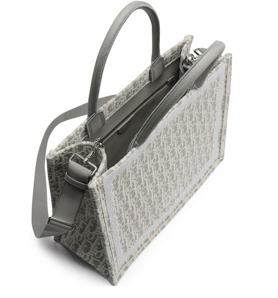 Introducing Dior's Medium Dior Book Tote with Strap, a stylish accessory featuring the iconic Dior signature on the front. This tote offers top handles and an adjustable, removable shoulder strap, ensuring versatile carrying options. Inside, find a zip pocket and two slip pockets for effortless organization.