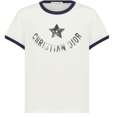 Reveal Dior's Dioriviera T-Shirt featuring the signature Christian Dior emblem and hallmark star. This unlined piece promises timeless elegance. Handle with care and opt for gentle dry cleaning to maintain its refined finish.