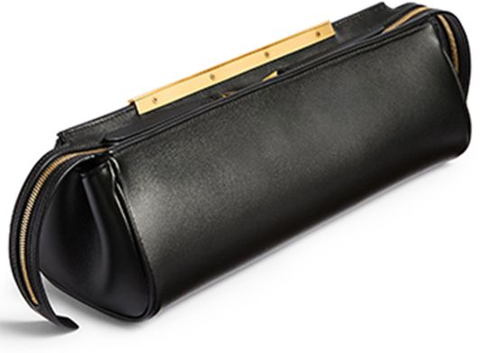 Reveal Khaite's Donna Evening clutch bag, crafted from smooth leather and adorned with a striking front logo. The gold finish adds a refined touch, making this clutch a statement piece for any occasion. Experience modern sophistication and impeccable detailing in every aspect of this design.
