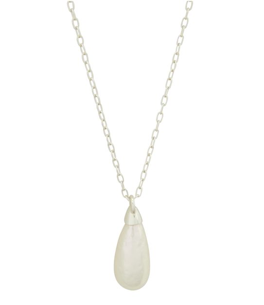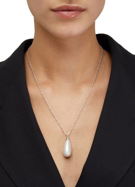 Known for transgressing the codes of traditional jewelry, Japanese design duo Ambush has created this Drop pearl necklace. It stands out thanks to a long silver chain on which hangs an imitation pearl delicately inscribed with the brand name. Wear it with your hair in an updo to enhance the neckline.