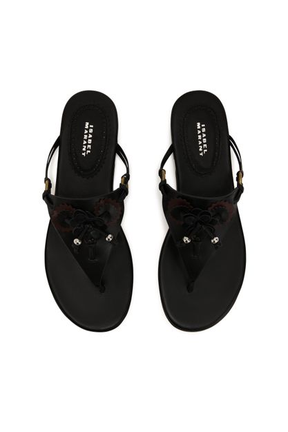 Reveal Isabel Marant's pearl-embellished Elato sandals, crafted from smooth leather with a refined open round toe and flat heel. The subtle metal finish and printed logo on the insole add a modern touch, while bead details elevate the design for effortless sophistication in every step.