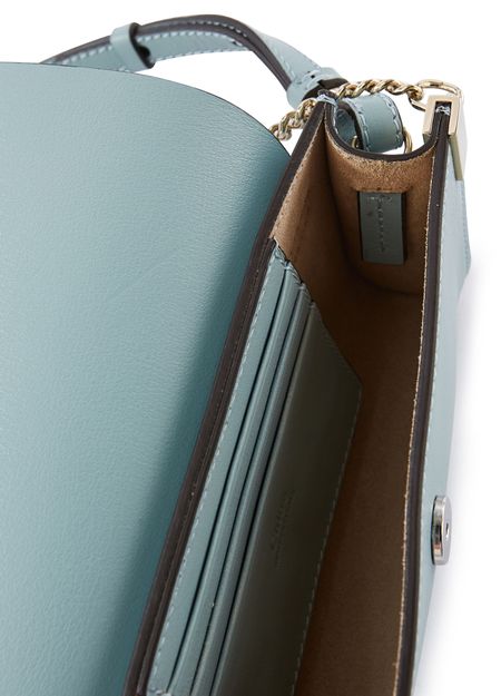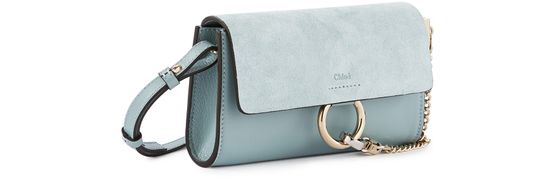 Ever more compact, the Faye small bag's attractive features are offered in a clutch version. In smooth and suede calfskin, this new Chloé bag has the fashion house's iconic closure on its flap that is easily recognizable by its oversized metallic ring and signature suspended chain. Take this season to try out pastel and nude colors with this small flap bag that can be worn...