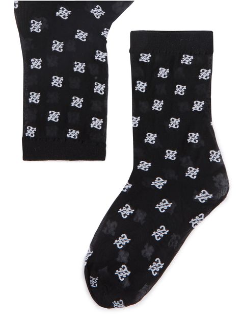 Fendi modernises socks with this design bearing the Italian brand's signature logo. These semi-transparent socks are embroidered all over with the FF pattern. They are in a stretchy polyamide blend fabric. Very cutting edge, you can wear them with 7/8 trousers.