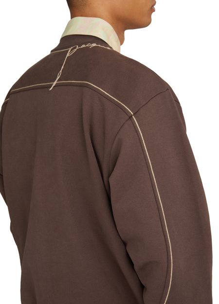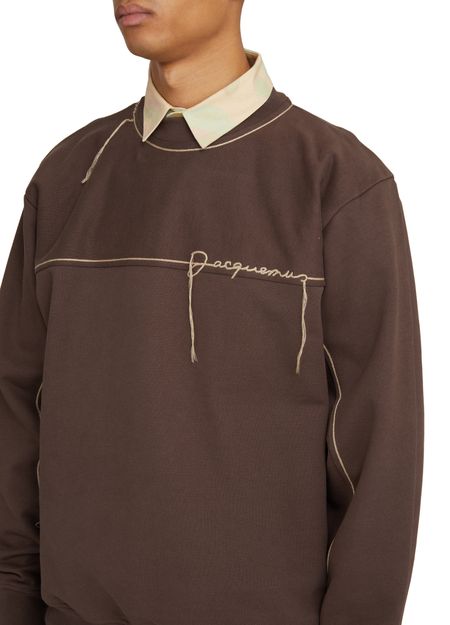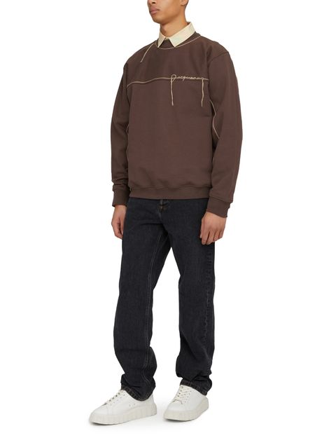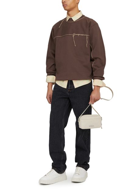 The Jacquemus Fio sweatshirt is a long-sleeved sweater made of warm fabric that is perfect for chilly days. It features a crew neck and a chest logo for added style. The straight cut and loose fit make it comfortable to wear all day long.