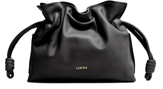 Reveal Loewe's mini Flamenco clutch, crafted from smooth nappa calfskin with a detachable thin strap for versatile styling. The visible stitching and front logo add a refined touch, while the drawstring closure secures your essentials in a single compartment for effortless sophistication.