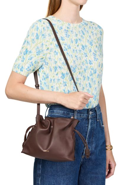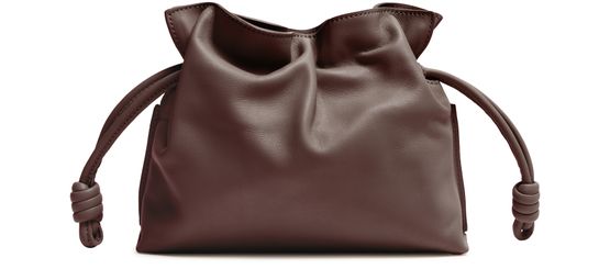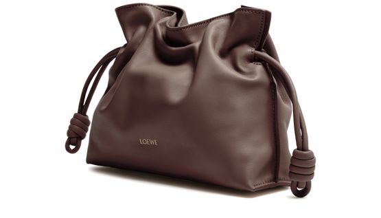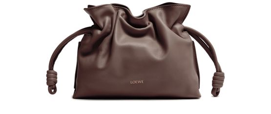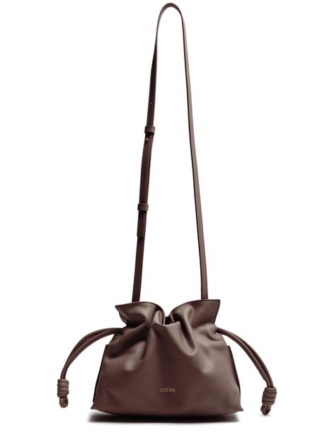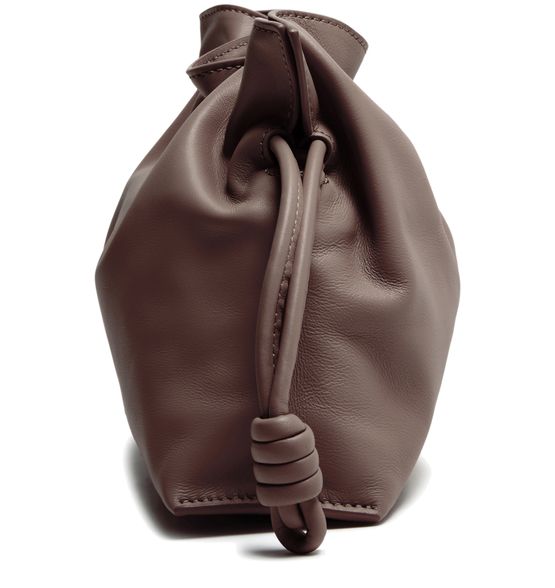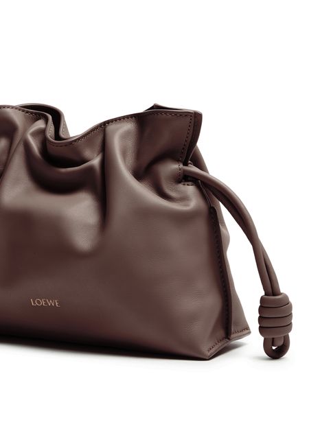 Reveal Loewe's mini Flamenco clutch, crafted from smooth nappa calfskin with a detachable thin strap for versatile styling. The visible stitching and front logo add a refined touch, while the drawstring closure secures your essentials in a single compartment for effortless sophistication.