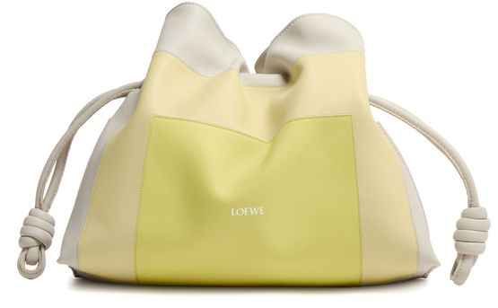 The Flamenco clutch is a soft and slouchy bag with a cinched closure and historical knot drawstrings. This medium version is crafted in nappa calfskin with intarsio squares inspired by Josef Albers's "Homage to the Square" series. This bag is part of the LOEWE x Albers collection.
