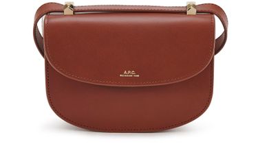APC's Mini Genève Bag features snap-button fastening and a flap closure for easy access. The gold letters logo adds a touch of sophistication, while the printed logo on the front adds an element of subtle branding. This versatile bag can be worn crossbody or with its single handle for a chic look.