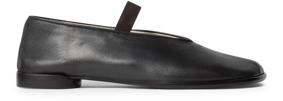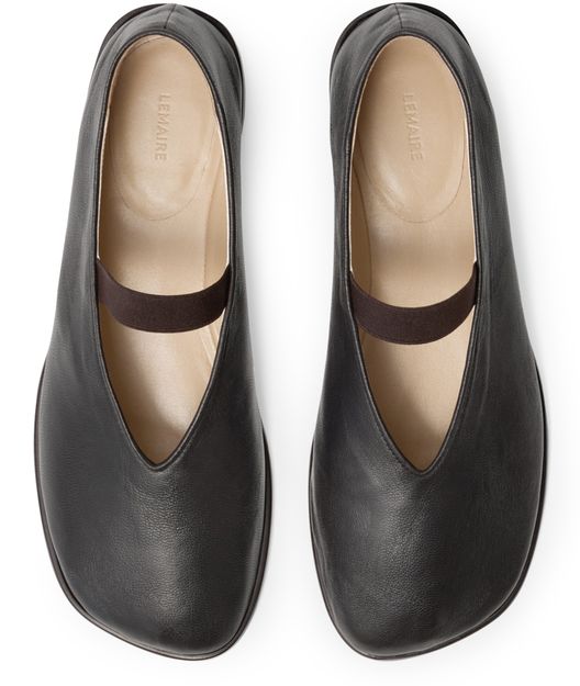 Reveal Lemaire's ballet pumps, crafted from smooth leather for a refined finish. The low, flat heel and closed, round toe design offer both comfort and timeless appeal. Subtle branding and meticulous construction make these ballet pumps a sophisticated addition to any modern wardrobe.