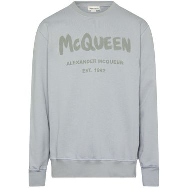 Alexander McQueen's long-sleeved sweatshirt features a straight cut and ribbed detailing for a comfortable yet stylish fit. With a round neck and chest logo, this graffiti sweatshirt adds a touch of urban edge to any ensemble. Perfect for casual, everyday wear, it combines luxury and streetwear for a unique look.