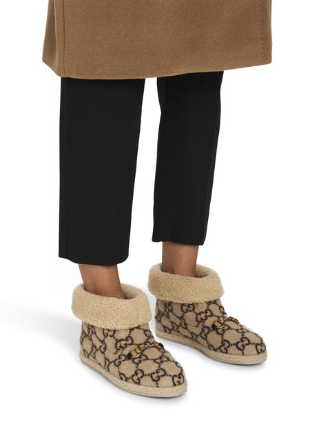 Made from wool and embellished with GG logos, the Gucci Fria boots rework the classic ankle boot. The Italian designer incorporates its iconic horsebit on the front of the foot.