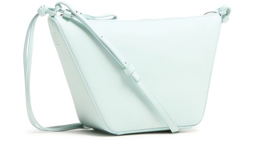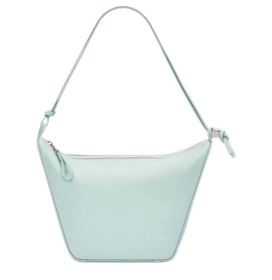 Discover Loewe's Hammock Mini Hobo Bag, a masterpiece in smooth leather with a sophisticated silver finish. This bag offers a single compartment with a zipper closure and an adjustable thin strap for versatile wear. Embossed with Loewe's iconic logo and adorned with visible topstitching, it reflects timeless elegance.