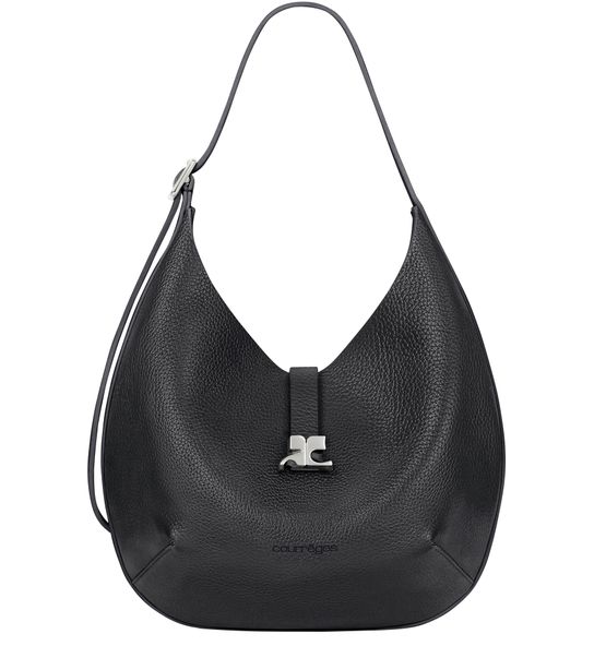 Reveal Courreges's Holy small hobo bag, crafted from grained leather with a single handle for effortless style. The silver clasp and front metallic logo add a refined touch, while visible stitching and a silver finish highlight the brand’s attention to detail and modern sophistication.