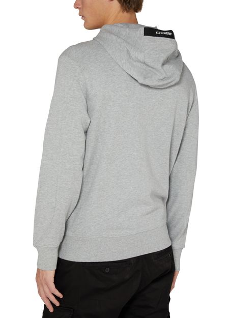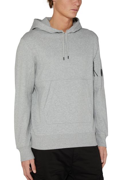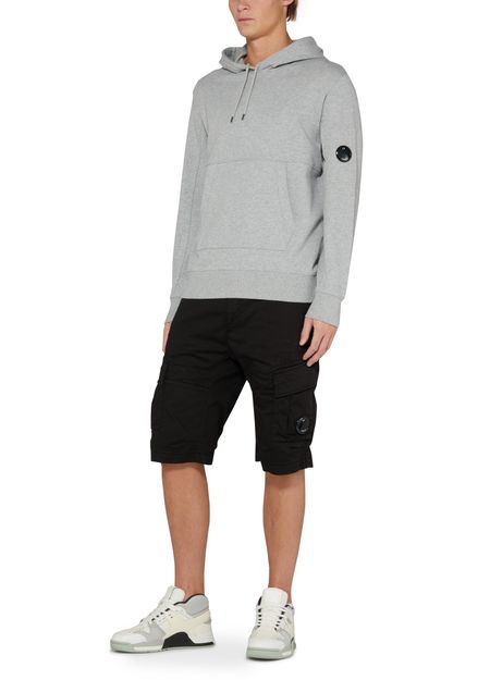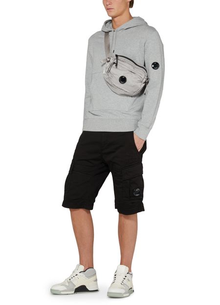 C.P. Company's Hoodie offers a slim fit that hugs the body, featuring an adjustable drawstring neckline for a personalized touch. Long sleeves provide warmth, while the iconic logo on the hood and sleeve adds a signature flair. A convenient kangaroo pocket and a sleeve pocket enhance functionality, complemented by ribbed cuffs for a snug finish.