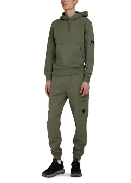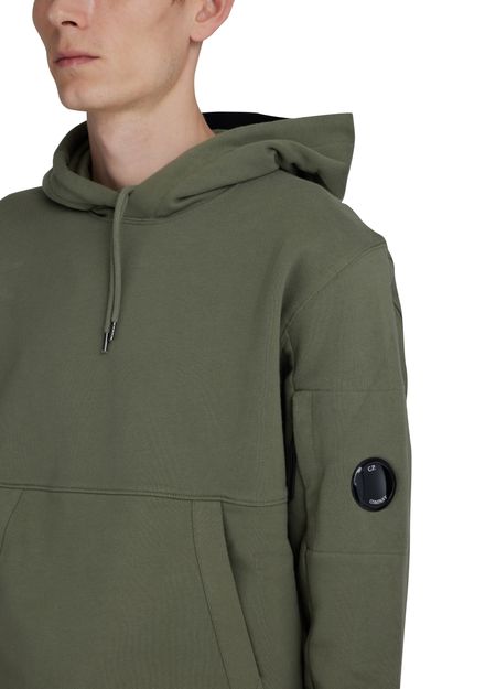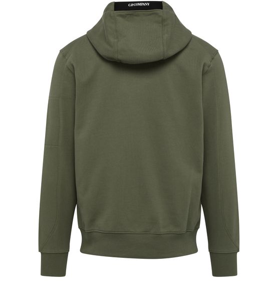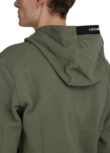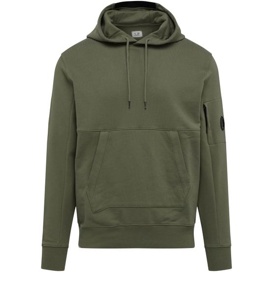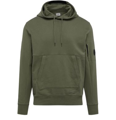 C.P. Company's Hoodie offers a slim fit that hugs the body, featuring an adjustable drawstring neckline for a personalized touch. Long sleeves provide warmth, while the iconic logo on the hood and sleeve adds a signature flair. A convenient kangaroo pocket and a sleeve pocket enhance functionality, complemented by ribbed cuffs for a snug finish.
