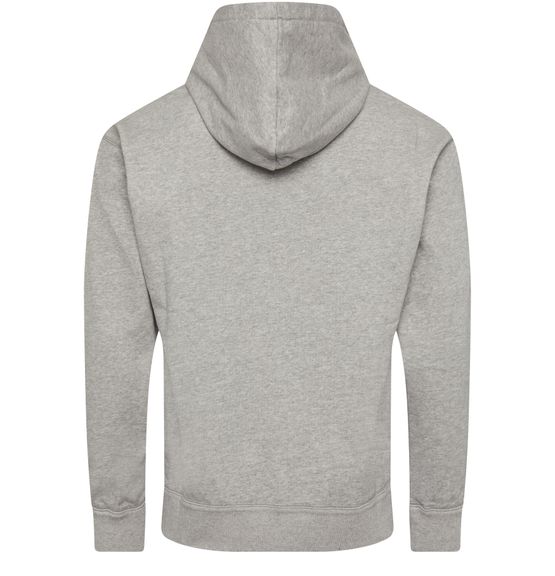 Description : Long-sleeved sweater, warm fabric, hood, large front pocket, chest logo, straight cut.