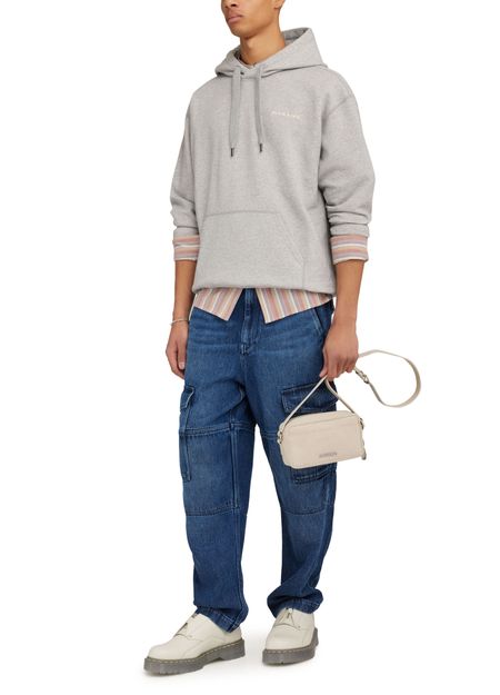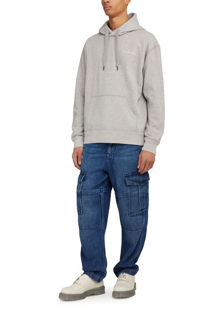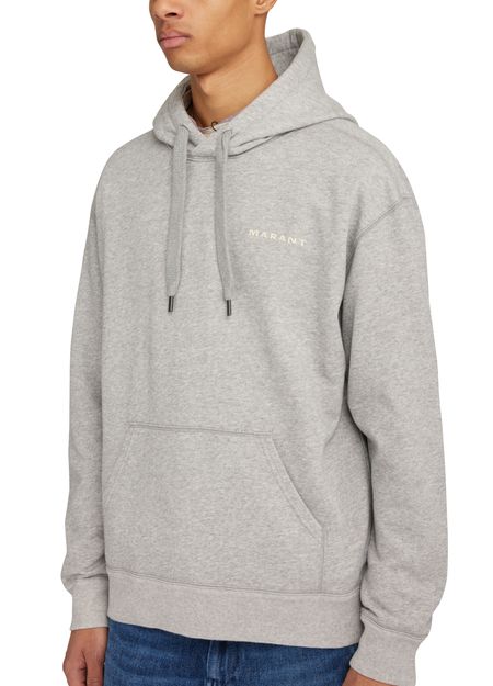 This Isabel Marant hoodie is a long-sleeved sweater made of warm fabric, perfect for chilly days. It features a hood and a large front pocket for added comfort and convenience. The chest logo adds a touch of style to the straight cut design.