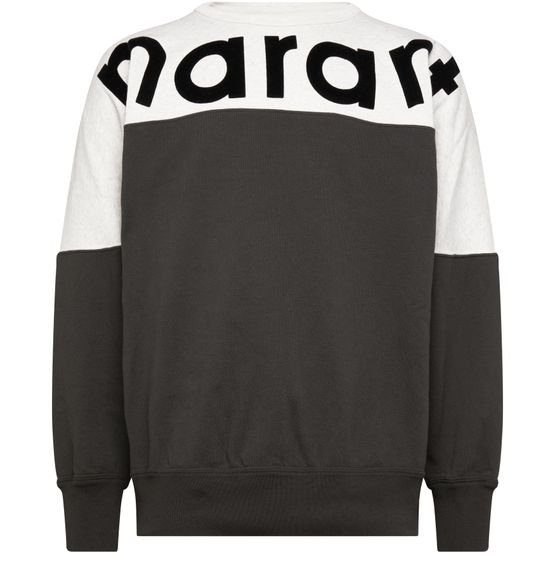 Isabel Marant Howley sweatshirt is a long-sleeved sweatshirt with a straight cut and ribbed detailing. It features a round neck and visible stitching, as well as a printed logo and two-tone print. This stylish sweatshirt is perfect for casual wear and can be paired with jeans or leggings for a comfortable yet fashionable look.