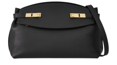 Reveal Salvatore Ferragamo's Hug crossbody bag, a masterpiece crafted from smooth leather. The adjustable thin strap and visible topstitching enhance its functional elegance. With its gold finish, this shoulder bag perfectly embodies signature charm. Experience the blend of style and practicality in every detail.