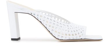 These Isa sandals designed by Wandler have a minimalist, modern design. Set on top of a rectangular block heel, they have a distinctive twisted strap and square toe that accentuate a strong look.