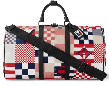 Part of the America’s Cup collection, this eye-catching Keepall Bandoulière 50 bag is made from Damier Flags canvas. The Damier Flags print evokes the tradition of flag signaling in the maritime world. Imagined as a patchwork of different flags, the Damier pattern is created through a checkered print, playing with scale and color.