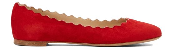 Urban accessories par excellence, the Lauren flats from Chloé exude a flowing, feminine energy. This sleek and comfortable piece is made from a Passion Red suede. The scalloped edges add a graphic detail to the timeless, round-toe design, easy to match with any outfit.