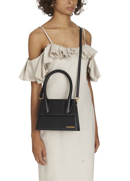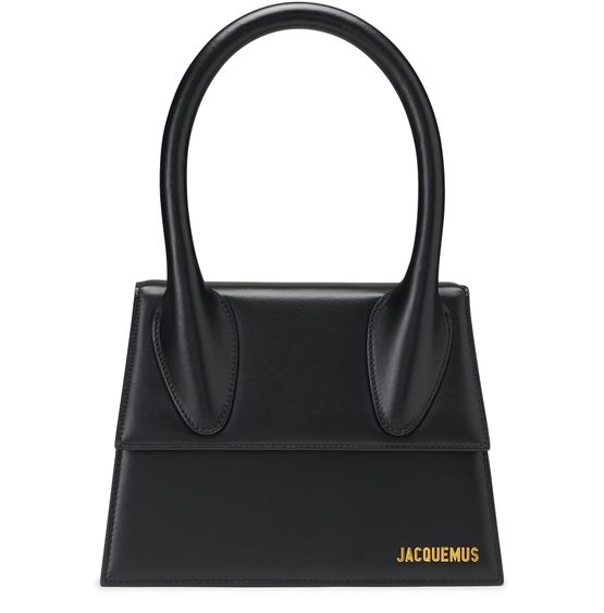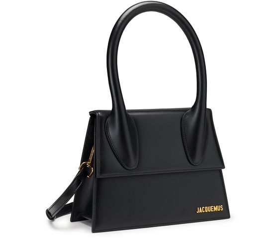 With a modern trapezium shape, the large Chiquito by Jacquemus is punctuated by a rigid rounded handle with large tabs and an adjustable shoulder strap.