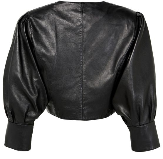 Reveal Chloe's biker jacket, crafted from smooth leather for a refined touch. The cropped silhouette and three-quarter sleeves offer a modern edge, while topstitched edges and a 3-button closure add distinctive detail. Perfect for elevating both casual and sophisticated looks with effortless versatility.