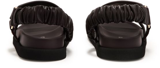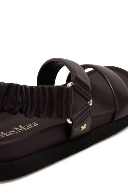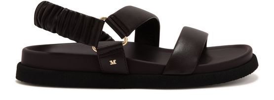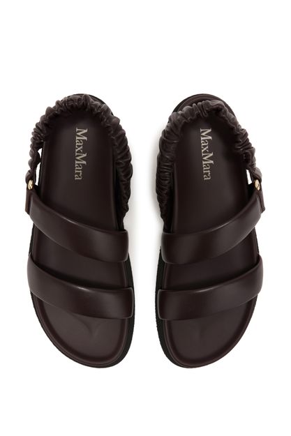 Reveal Max Mara's leather sandals with a modern open round toe and a secure ankle strap. The thick contrasting sole and wide straps ensure comfort and stability, while the discreet logo on the inside adds a refined touch. Perfect for elevating everyday style with effortless sophistication.