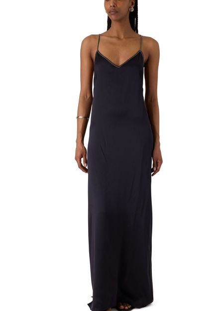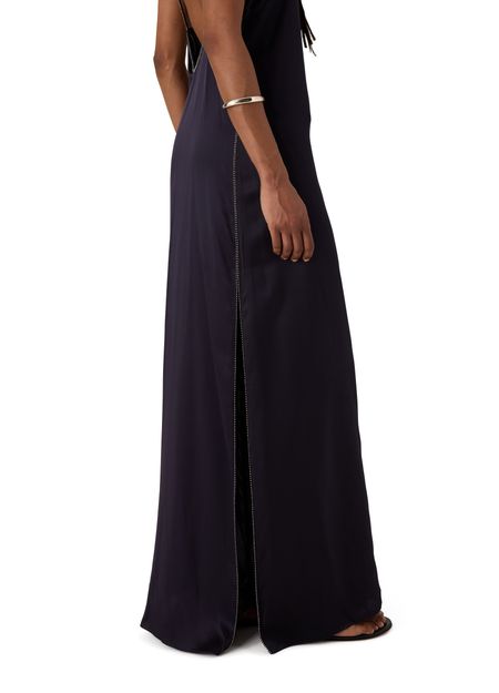 Discover Isabel Marant's Leza v-neck sleeveless maxi dress, a striking silhouette with a backless design and side slit. The flowing shape and refined details make it perfect for elegant evenings or standout daytime looks, offering a modern take on effortless sophistication.