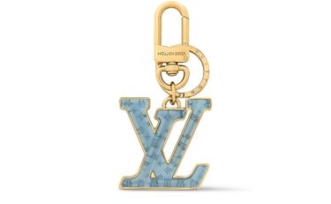 The playful design of the LV Gloss key holder features a bright, summery version of a House icon. The famous LV Initials are finely crafted in translucent Plexiglas, adorned with the Nanogram motif and set in lustrous gold-toned metal. A colorful statement piece, perfect for adding a bold signature accent to a handbag or set of keys.