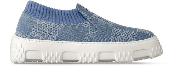 The LV Space Lander slip-on is part of the Prefall 2024 collection. It comes in Damier-pattern denim for a relaxed, summery feel and features an elasticized, ribbed top for easy fitting. The chunky rubber outsole has the Marque L. Vuitton Déposée signature, associated with Damier canvas, on the tread.