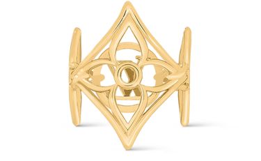 The LV Twiggy ring features a cleverly designed metal frame that forms the ring's structure, culminating in a pointed Monogram Flower at its center. Monogram Flowers and an LV Circle are all intricately connected to create one refined piece of jewelry. The polished finish makes this item an elegant option for evening.