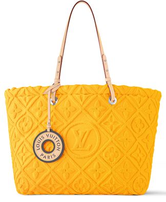 Designed for beach lovers, the plush LVacation Tote is made from ultra-supple certified organic terrycloth, with a woven version of the Monogram pattern. The bag is signed with a leather “Louis Vuitton Paris” charm. Inside is cotton lining with a vibrant print. The removable natural cowhide leather trim means the bag is machine washable.