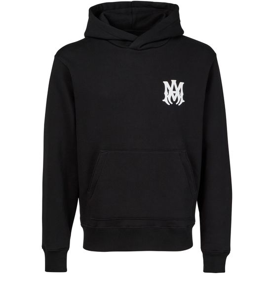 Amiri's Ma Core logo hoodie combines style and comfort with its long-sleeved design and practical kangaroo pocket. The prominent chest logo and striking printed logo at the back make a bold statement. With its cozy hood, this hoodie is perfect for layering or casual outings, ensuring you stay effortlessly chic.