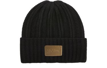 Reveal Max Mara's Macbeth beanie, a stylish accessory with a round crown and turn-up brim. The front logo and visible stitching add a modern touch, making it a versatile choice for any outfit.
