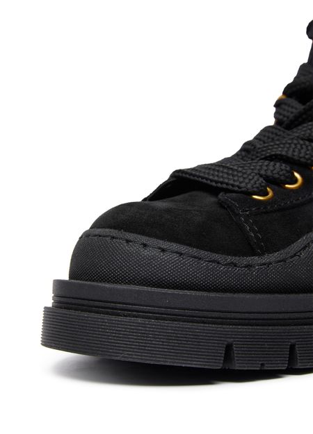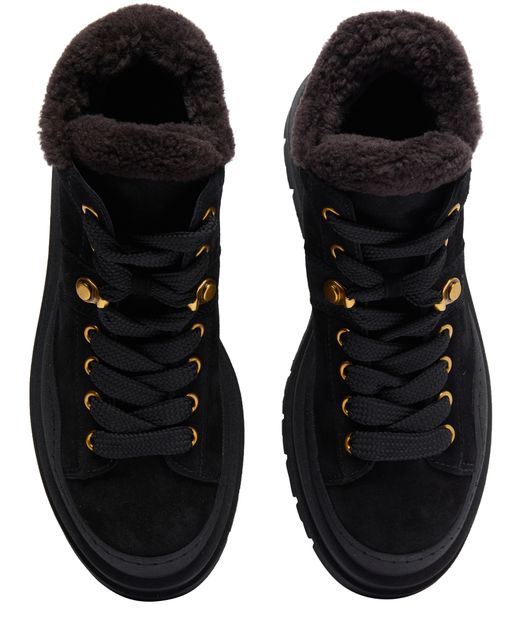 See By Chloe's Maelliss ankle boots feature a round toe and closed design, with a low heel for added comfort. The gold finish adds a touch of elegance to the high-top upper, while the notched sole provides traction and style. Perfect for adding a chic touch to any outfit.