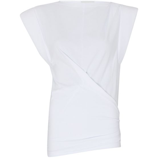 Isabel Marant's Maisan top showcases a regular length with short sleeves, elegantly draped detail enhancing its silhouette. The appliquéd logo adds a touch of sophistication, while visible stitching highlights the craftsmanship. Perfect for effortless styling, this blouse transitions seamlessly from day to night, embodying a chic, contemporary aesthetic.