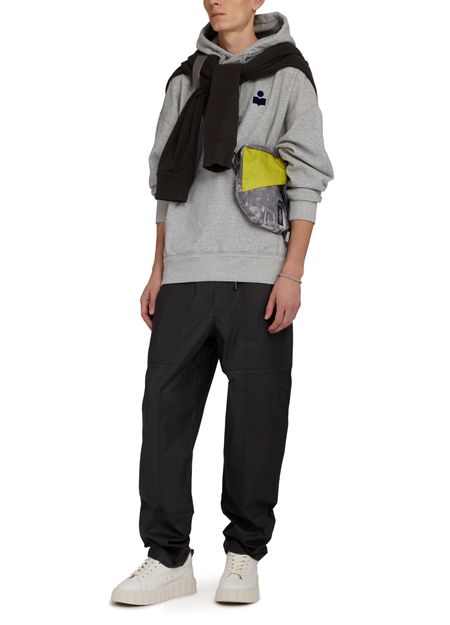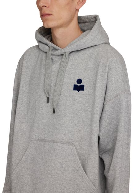 Isabel Marant Malek-GB hoodie is a long-sleeved sweatshirt with a hood and kangaroo pocket. It has a boxy fit and ribbed detailing, with a chest logo adding a touch of branding. This versatile piece is perfect for casual wear and can be paired with a variety of outfits.