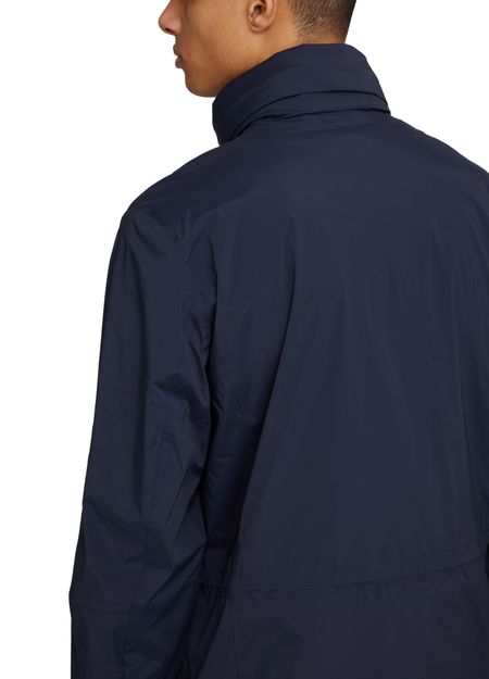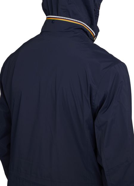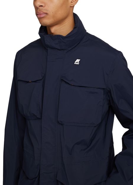 K-way's Manphy puffer jacket is a versatile and stylish choice for chilly weather. It features a concealed zipper and snap fastening for a clean look. With a breast pocket, flap pockets, and a large front pocket, there is plenty of storage space. The long-sleeved jacket also includes a hood, front logo, chest logo, and logo at the back label for added branding details.