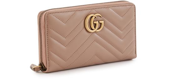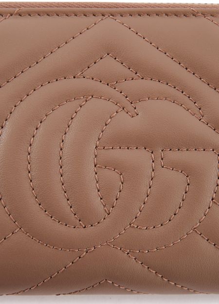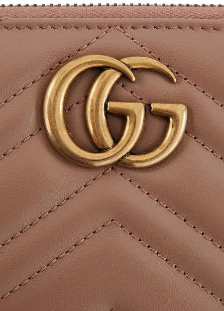 Made from herringbone quilted leather, the Gucci Marmont wallet has a zipped opening with multiple compartments that can be used to organise personal items.