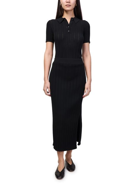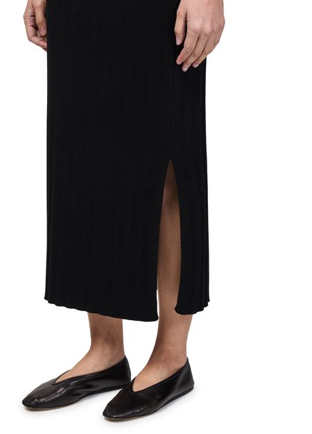 Reveal Bompard's maxi skirt with irregular rib-knit, designed with a straight silhouette and an elasticated waist for effortless comfort. The unique ribbed texture adds a modern edge, while the maxi length ensures a graceful flow—perfect for elevating your look from day to evening.