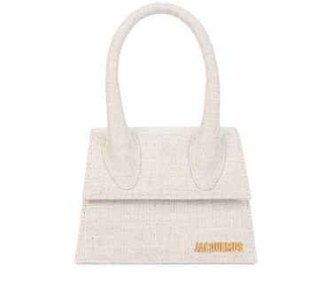 With its geometric lines and maxi-length shoulder strap, the medium Chiquito bag is full of character. Made from a mix of viscose and gray linen, it is decorated with Jacquemus' name in gold letters.