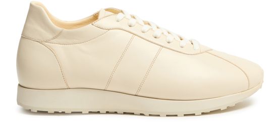 Elevate your sneaker collection with The Row's Mica sneakers. These leather sneakers feature a chic round toe and flat heel, ensuring comfort with laces and strap closure. The engraved logo and visible stitching add sophistication, while the closed design offers a sleek finish.